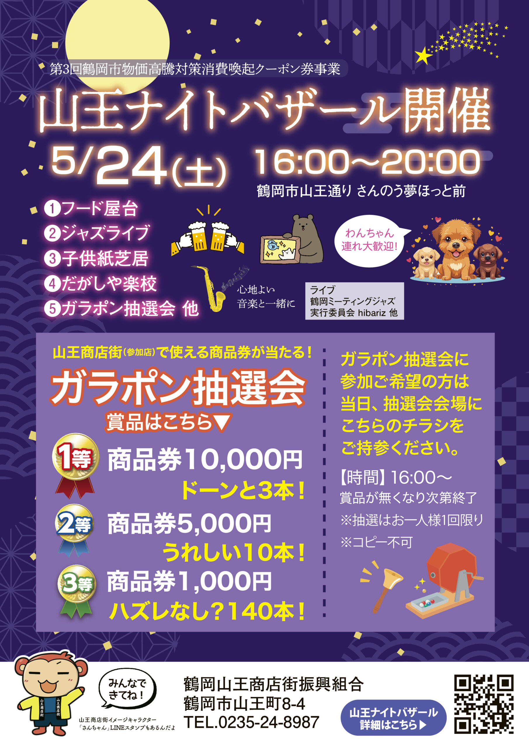 5月24日(土)16時〜20時、山王ナイトバザール開催します。